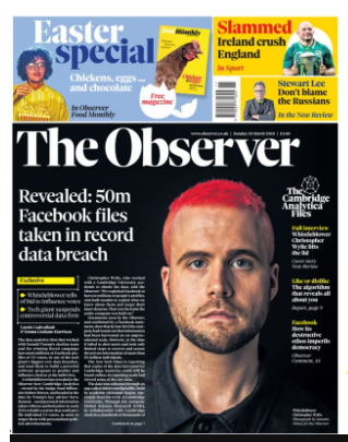 You may have read BBC Technology correspondent Dave Lee's BBC News website report Facebook suspends controversial data firm Cambridge Analytica yesterday, or the Home page report on it yesterday evening headlined Trump campaign data firm accused of harvesting Facebook data, or even the write-up about The Observer's front page story about it on James Stephenson's favourite page of the BBC website, The Papers, this morning.